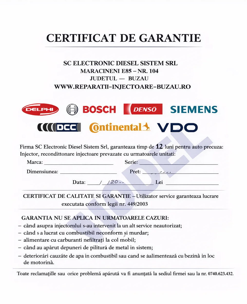 Reparații Injectoare cu Garantie 12 Luni, calitatea lucrărilor și siguranța clienților noștri sunt priorități absolute. Asiguram garantie in baza legii OUG 140/2021, la toate lucrarile de reparatii injectoare si reconditionare injectoare executate de firma noastra.